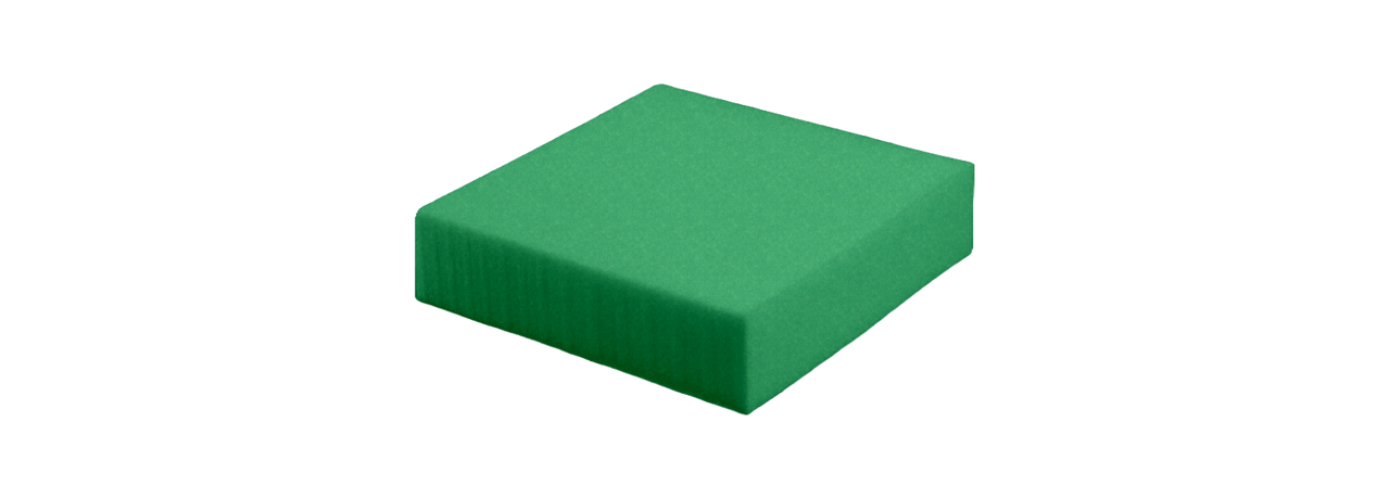 Губки для мытья автомобилей и посуды, упаковку, наполнение для кейсов, батутных ям, физкультурные матов, шумоизоляция и многое другое можно изготовить из нашего поролона в зеленом цвете.