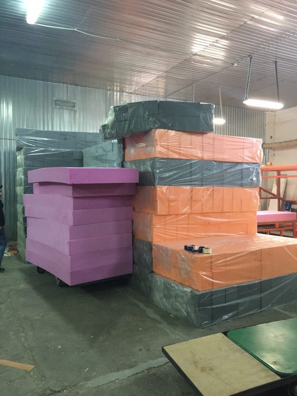 У нас за основу взят иной метод - периодический или блочный. Его приоритет в том, что пена наращивается снизу вверх, улучшая показатели качества - износостойкость, прочность и упругость поролона. Специфика этого способа: